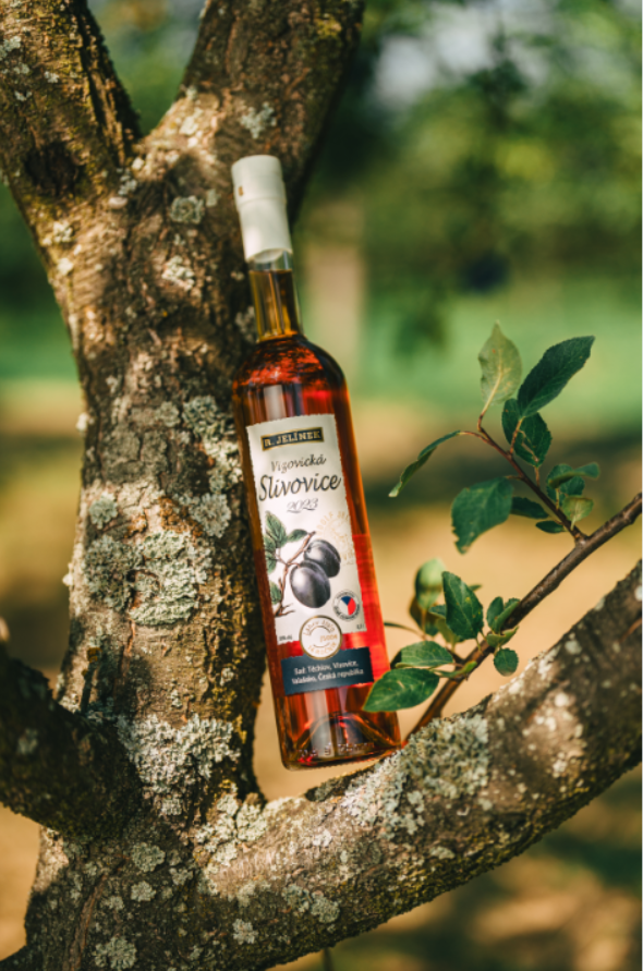 1x zlatá Vizovická slivovice 2023 50% 0,7l - připravená převážně z odrůd Čačanská rodná a Durancie, pocházejících z vlastního vizovického sadu.