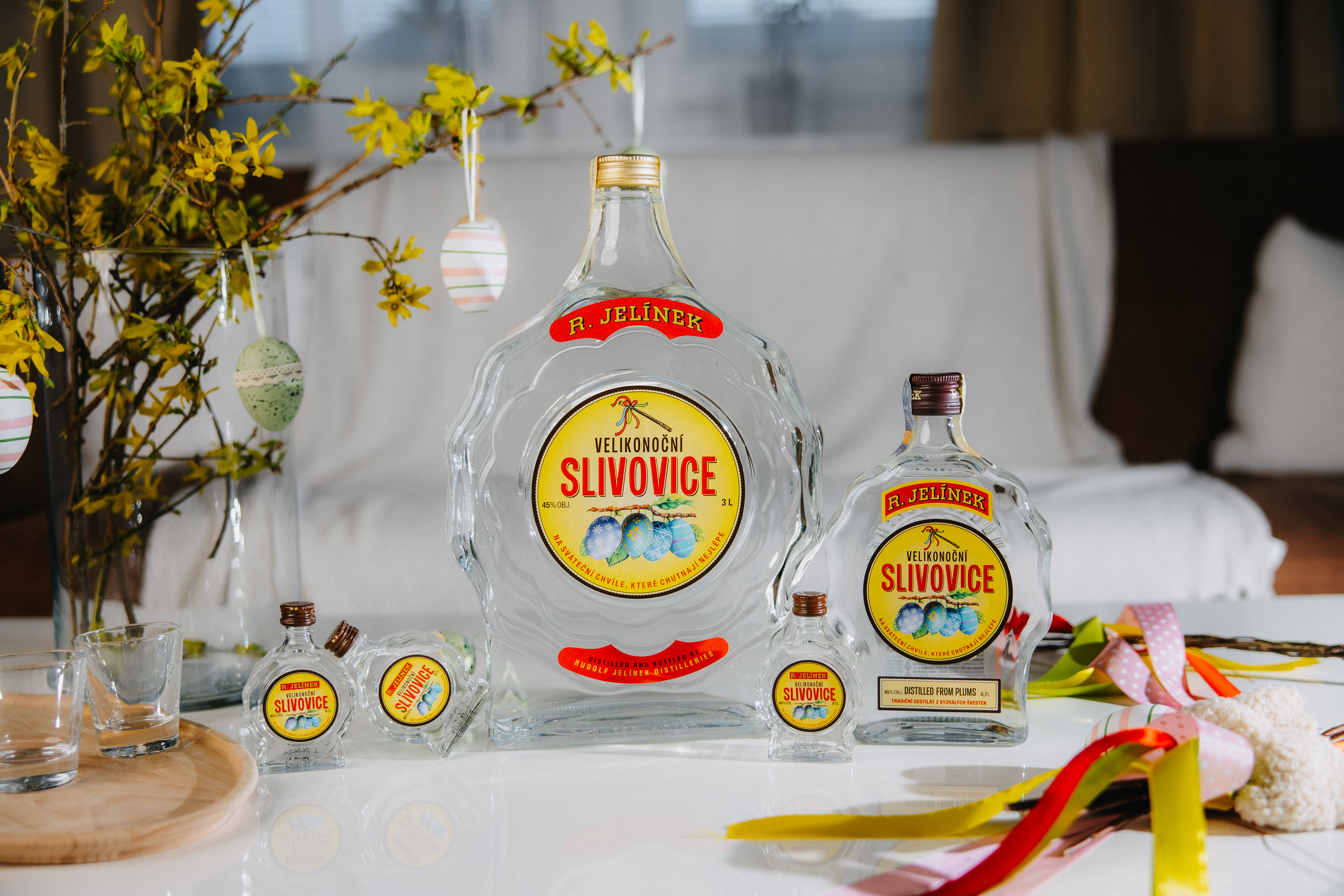 Limitovaná velikonoční edice třílitrové láhve ovocného destilátu R. JELÍNEK s exkluzivní sváteční etiketou: