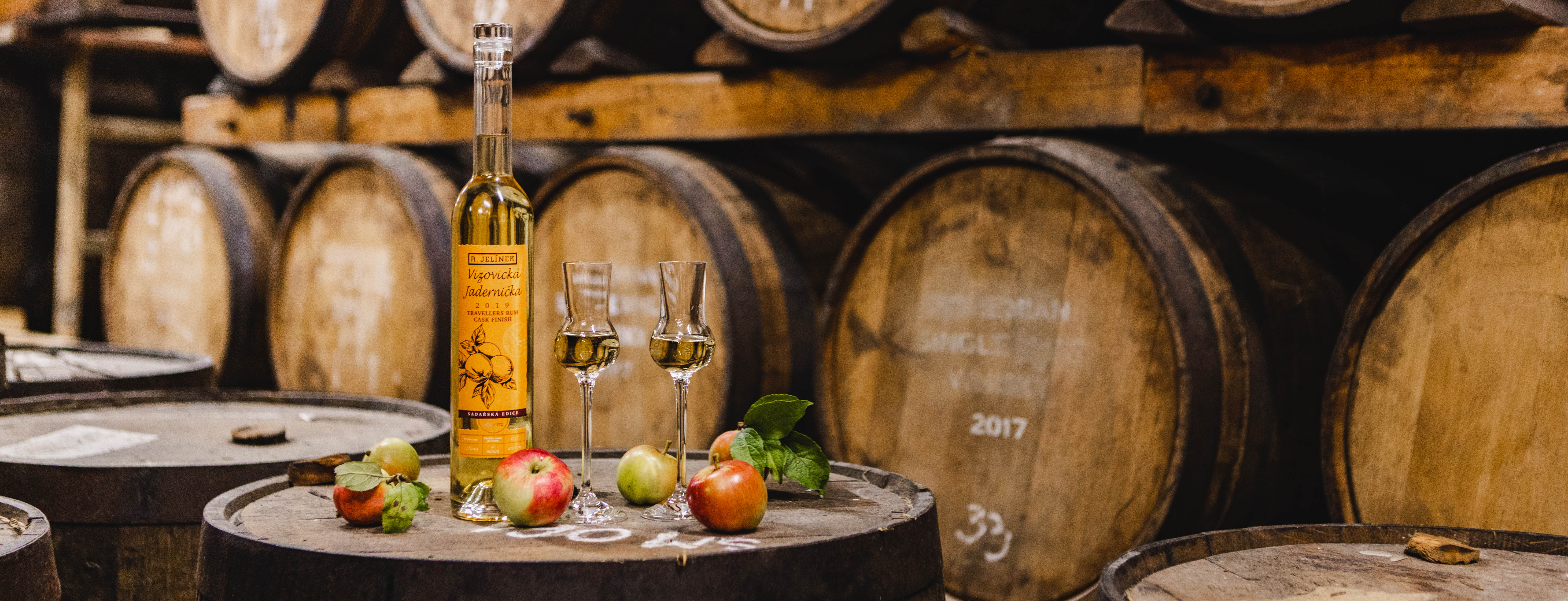 Destilát z odrůdy jablek Moravská jadernička, které byly vypěstovány ve vlastních sadech společnosti R. JELÍNEK.