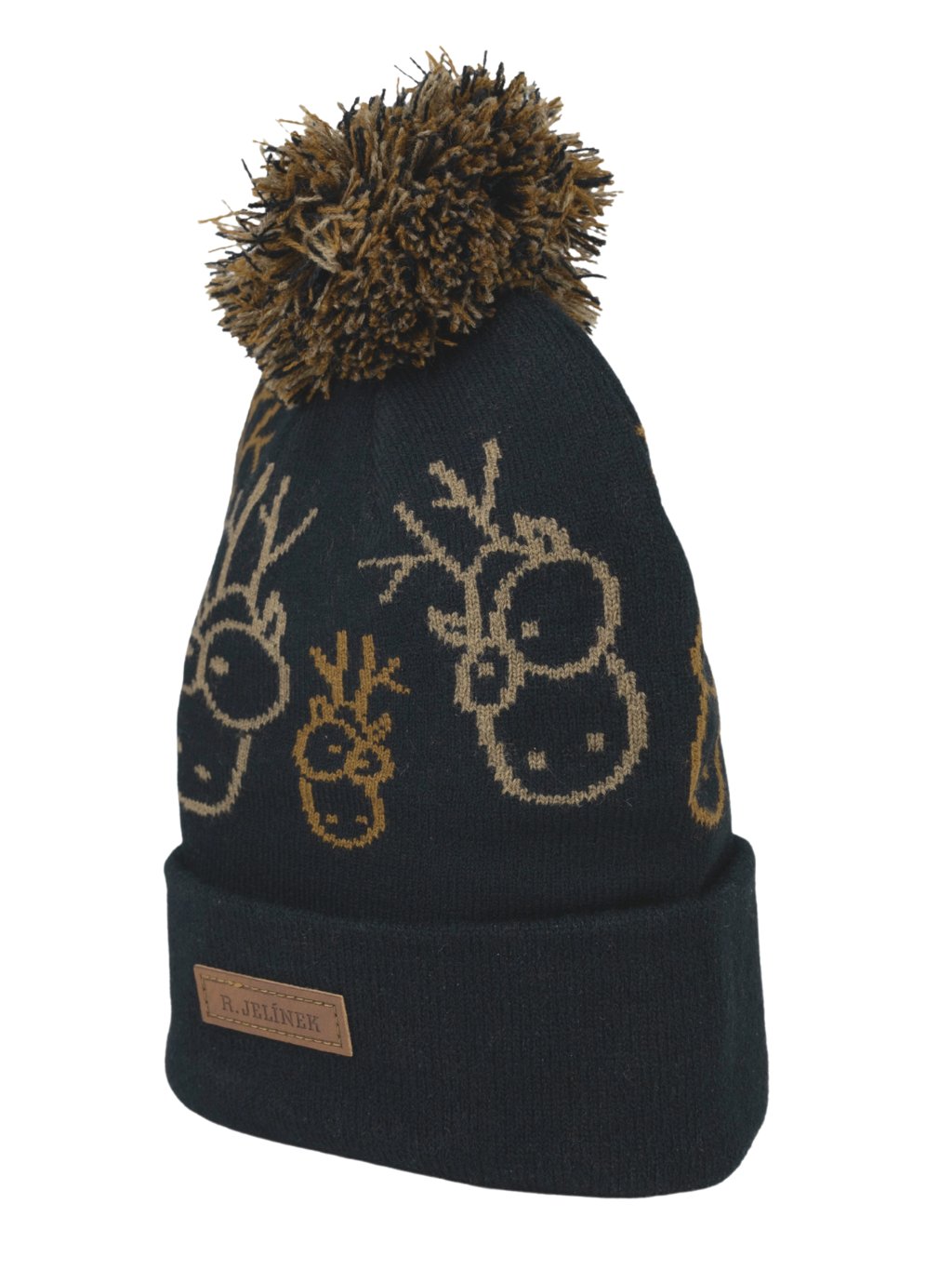 Teplá a stylová zimní čepice s vtipným jelením motivem.